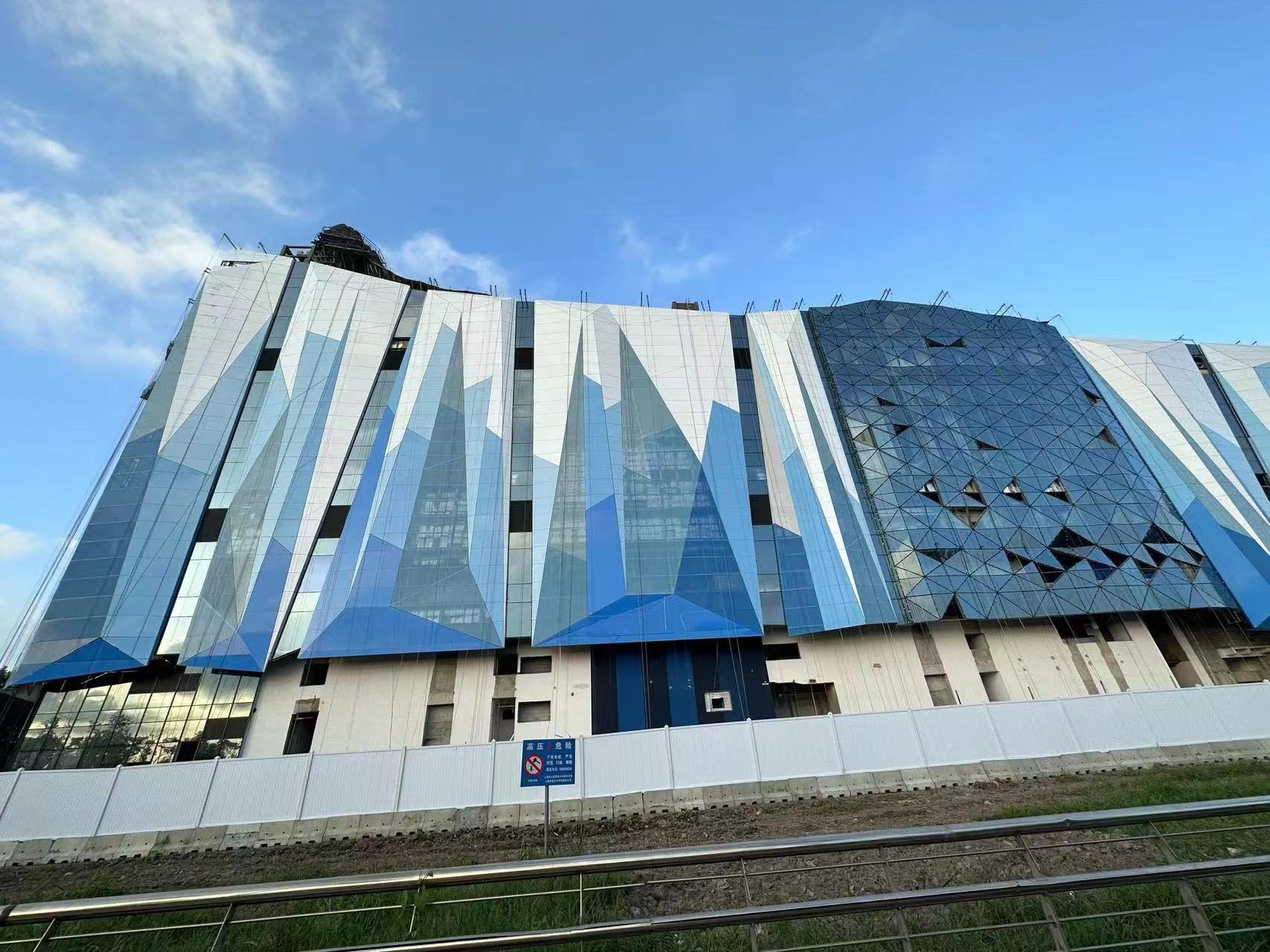 雅泰集團(tuán)承建上海臨港冰雪北區(qū)幕墻整體制作及建設(shè),本項(xiàng)目為菠蘿面異形設(shè)計(jì),充滿現(xiàn)代感的外立面,把冰雪世界的晶瑩閃耀充分展現(xiàn)。與之相匹配的鋁幕墻板的結(jié)構(gòu)復(fù)雜,加工難度較大,全異型、超大、超寬、超長鋁板,多數(shù)板長6-7米,且角度尖銳精度要求非常嚴(yán)格。面對高難度重點(diǎn)工程,雅泰集團(tuán)快速成立項(xiàng)目攻艱突擊隊(duì),選調(diào)管理、設(shè)計(jì)、加工精英,結(jié)合理解冰雪項(xiàng)目設(shè)計(jì)特點(diǎn),最大程度達(dá)成設(shè)計(jì)師初衷。加工團(tuán)隊(duì)對異型板件進(jìn)行優(yōu)化拆解,分件加工,再進(jìn)行一體化工廠組裝集成。同時(shí)集團(tuán)擁有行業(yè)內(nèi)體量、規(guī)模均在前列,全長700米的進(jìn)口先進(jìn)噴涂設(shè)備,充分滿足超大、超長、超寬鋁板的氟碳漆面噴涂完成。