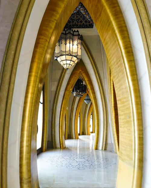 外飾面通過雅泰集團生產(chǎn)的黃褐色金屬光澤的鋁單板表達出輕盈、時尚的品質(zhì),內(nèi)核金色磚紋肌理表達出濃烈的新疆地域文化特征,整個建筑如盛開的金色雪蓮。